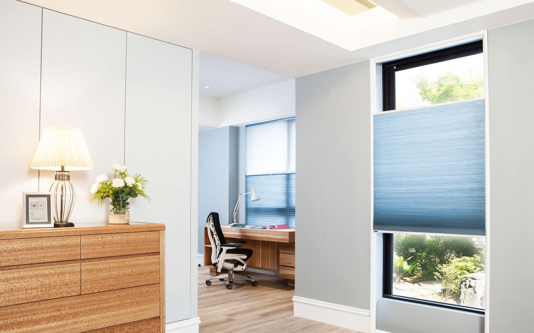 Experience the allure of Honeycomb Shades, a popular choice for their aesthetics, energy efficiency, and timeless style. Their unique cellular structure creates pockets of air that act as a natural insulator, keeping your home cooler during summers and warmer during winters. These shades serve as an effective barrier, reducing energy consumption by up to 25% – 30% by minimizing heat gain or loss through windows and doors. Available in single or double layers, Norman’s Portrait™ Honeycomb line offers a wide array of fabric options, from sheer to room darkening, complete with diverse patterns and textures. Elevate your space with these shades that effortlessly blend functionality and elegance. Choose from various operating systems, including the award-winning SmartRise cordless, SmartFit®, and motorized options, for unmatched convenience and style.